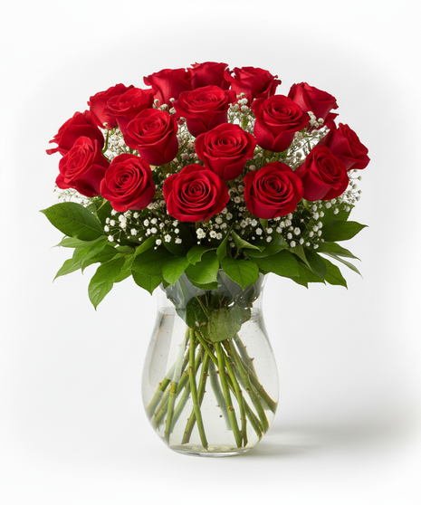 Say "I Love You" with this classic bouquet of One or Two dozen premium red roses, artfully arranged with lush filler in an elegant glass vase. Don't wait for a special occasion, show your love today!